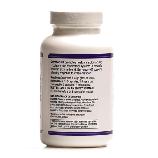 Serracor-NK de AST Enzymes es un complejo de las enzimas bromelina, nattoquinasa y serrapeptasa, rutina, amla y otras enzimas proteolíticas (que digieren proteínas) especialmente desarrollado para proteger el organismo. Serracor-NK también contiene coenzima Q10, que desempeña un papel crucial. En efecto, cada vez que una enzima actúa en el organismo, necesita una coenzima para catalizar esta acción. La composición de Serracor-NK aporta una proporción equilibrada de enzimas y coenzimas para que pueda funcionar de forma independiente, sin tener que depender de los alimentos.